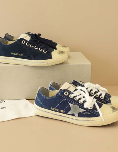 골든구스 [ G.G.D.B ] 네이비 스웨이드스타 & 엠브레이더리 레터링 브이스타 LTD 스니커즈