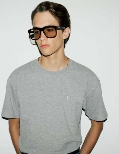 25년 YSL 입생로랑 자수로고 라운드 그레이 반팔 티셔츠 0609