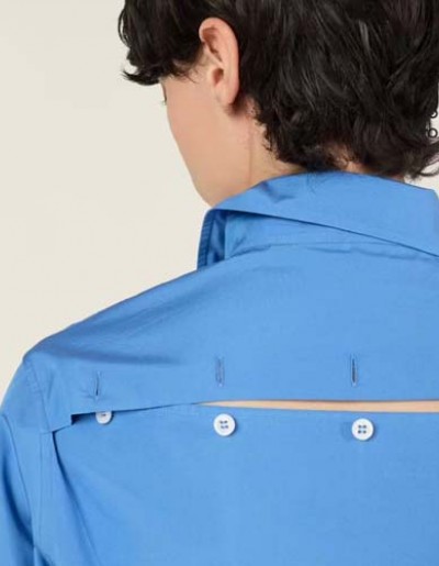 • 25년 미우미우 자수 로고 뒷트임 블루 셔츠 0909