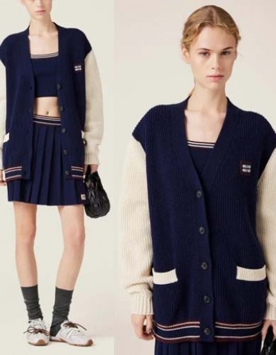 미우미우 로고 와펜 울캐시 가디건