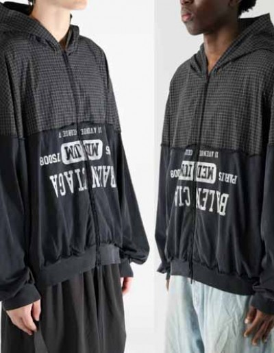 25년 발렌시아가 디스트레스트 로고 프린팅 체크 코튼 트윌 저지 후드 재킷 1125