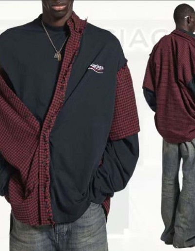 26ss 발렌시아가 레드 체크 패치드 셔츠 0305
