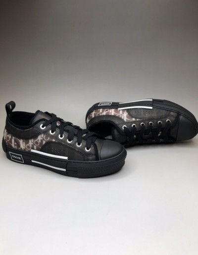DIOR 디올 OBLIQUE “B23” 로우탑 스니커즈 블랙 코튼 슈레이스 3SN249YJP_H960 > 디올