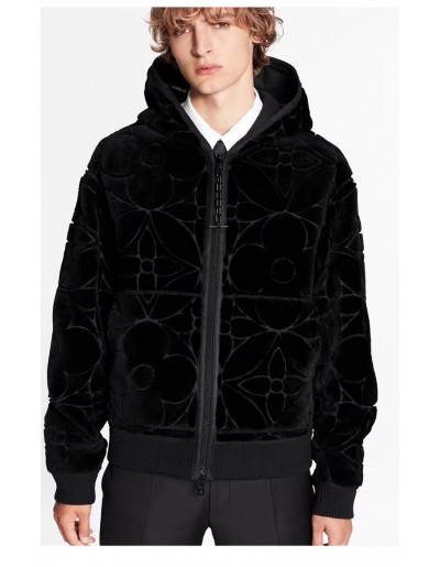 21Fw 루이비통 모노그램 양면 엠보싱 양가죽 앙털 후드점퍼 1129