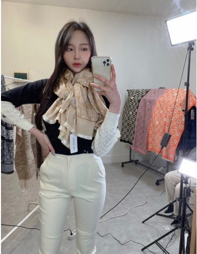 크리스찬 디올 로고와 , 실크65% ,캐시미어 35%의 함량으로 최상급 고퀄리티를 자랑하는 디올 머플러 & 숄이에요 !