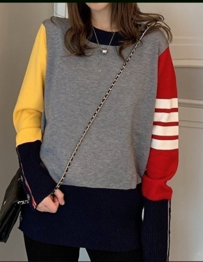 톰브라운 칼라풀 라운드 니트