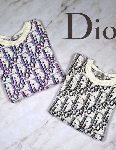 디올 자가드 레터링 디지털 미들게이지 라운드 슬라브 니트