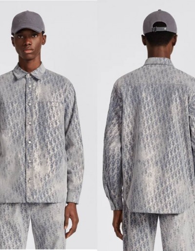 24년 디올 오블리크 헤리티지 그레이 및 골드톤 코튼 블렌드 트윌 오버셔츠