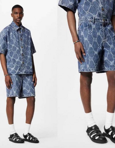 24ss 루이비통 모노그램 프린티드 쇼트 슬리브드 데님 셔츠 + 바지