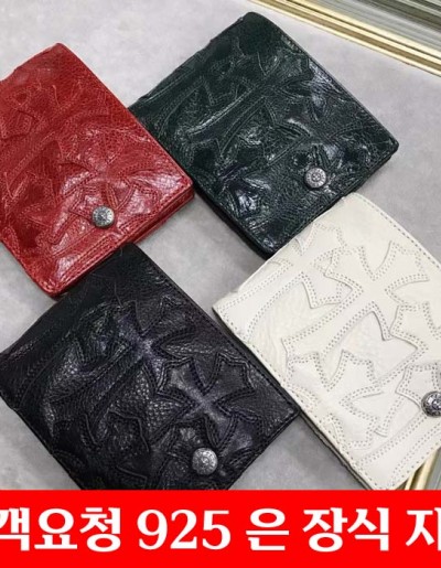 크롬하츠 로고 소가죽 은 장식 반지갑 3종