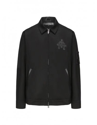 25년 크롬하츠 로고 가죽 로고 블랙 재킷 > 크롬하츠