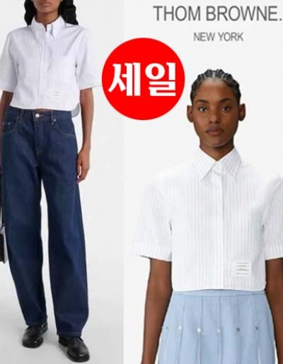 톰브라운 스트라이프 크롭 숏 반팔셔츠 0815