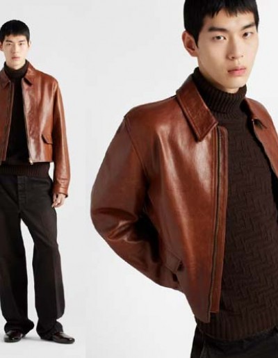 25년 프라다 로고 레더 재킷 0824