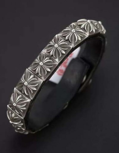 크롬하츠 로고 레더 925 통실버 Bracelet 0831