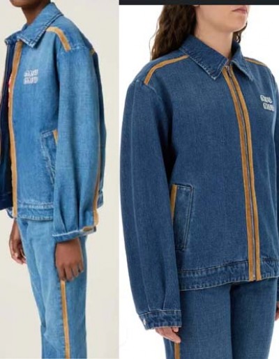 25년 미우미우 로고 데님 & 레더 Blouson 재킷 0923