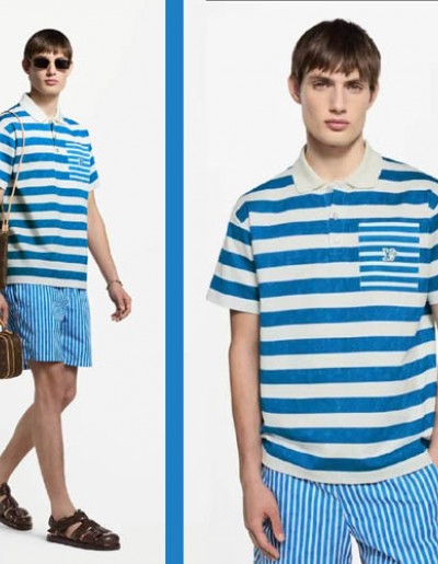 루이비통 블루 화이트 모노그램 스트라이프 폴로 반팔 티셔츠 0320