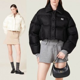 25년 미우미우 자수로고 크롭 다운점퍼
